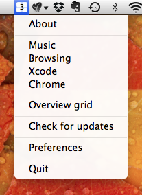 From there, you can control TotalSpaces2, and access the preferences where you can set up your grid, name your spaces, and configure your desktops just how you like them.
